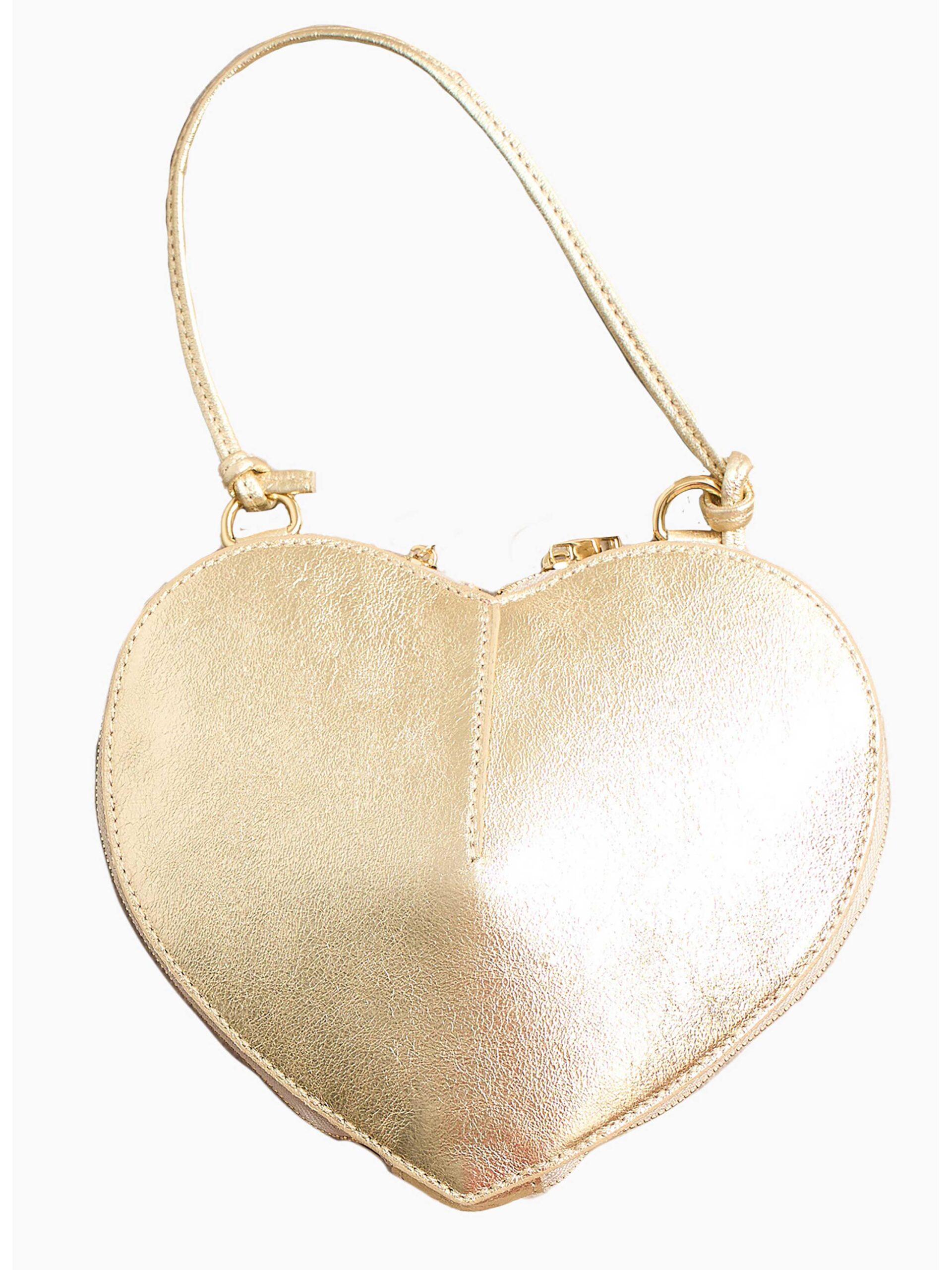 Heart Crossbody Bag Pebbled Italian Leather in Gold