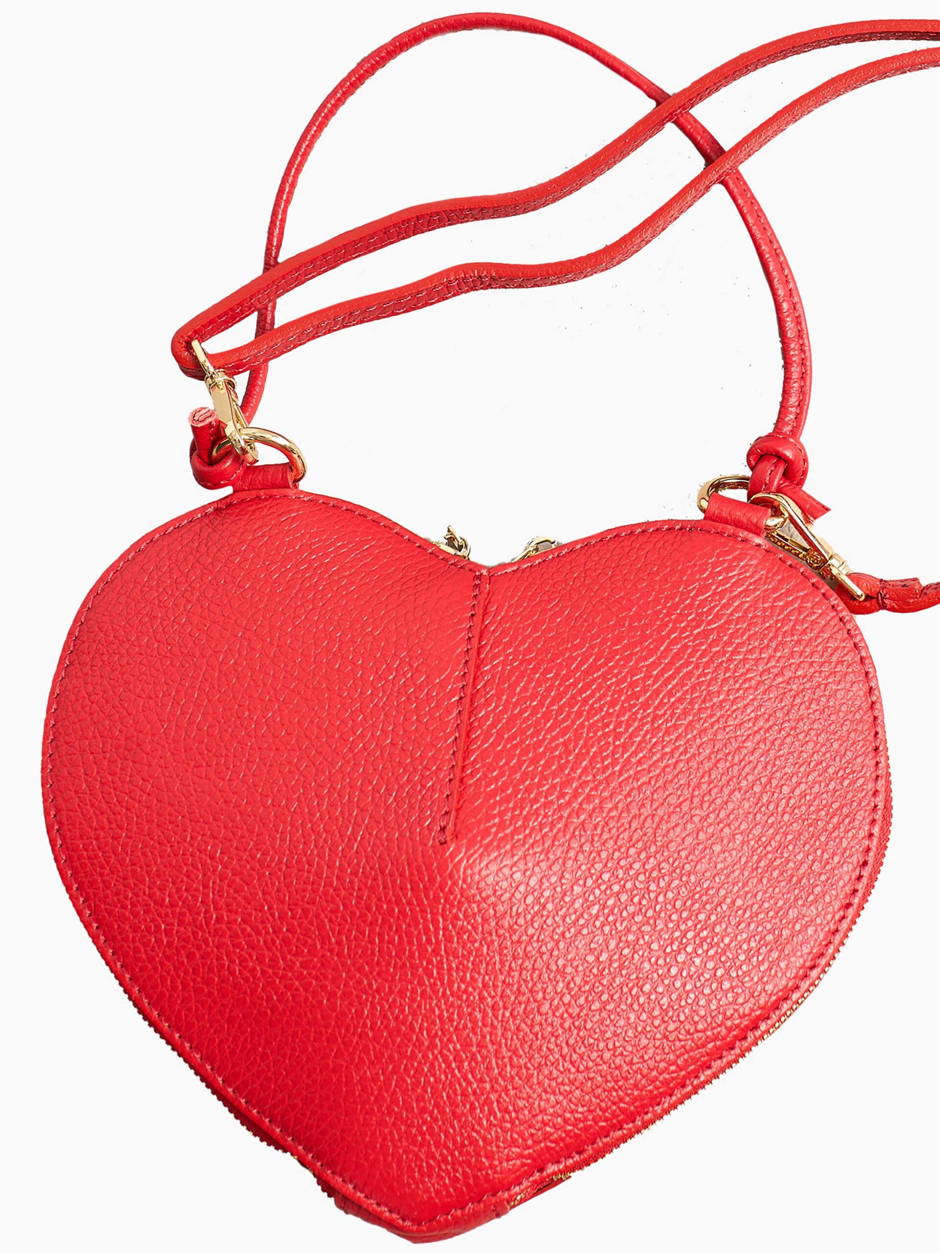 Heart Crossbody Bag Pebbled Italian Leather in Red