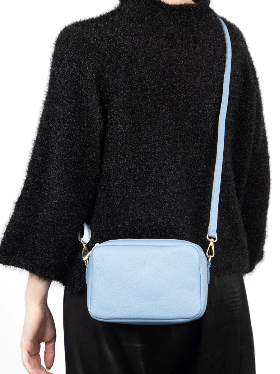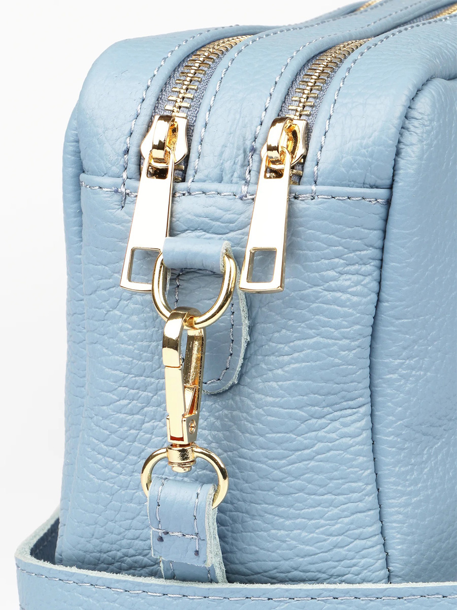 Naomi Italian Leather Crossbody Bag Azure Blue Pebbled