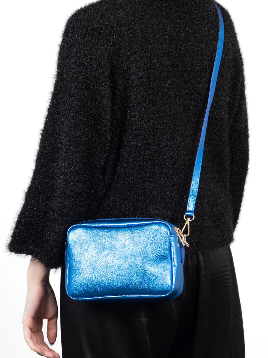 Naomi Italian Leather Crossbody Bag Metallic Blue