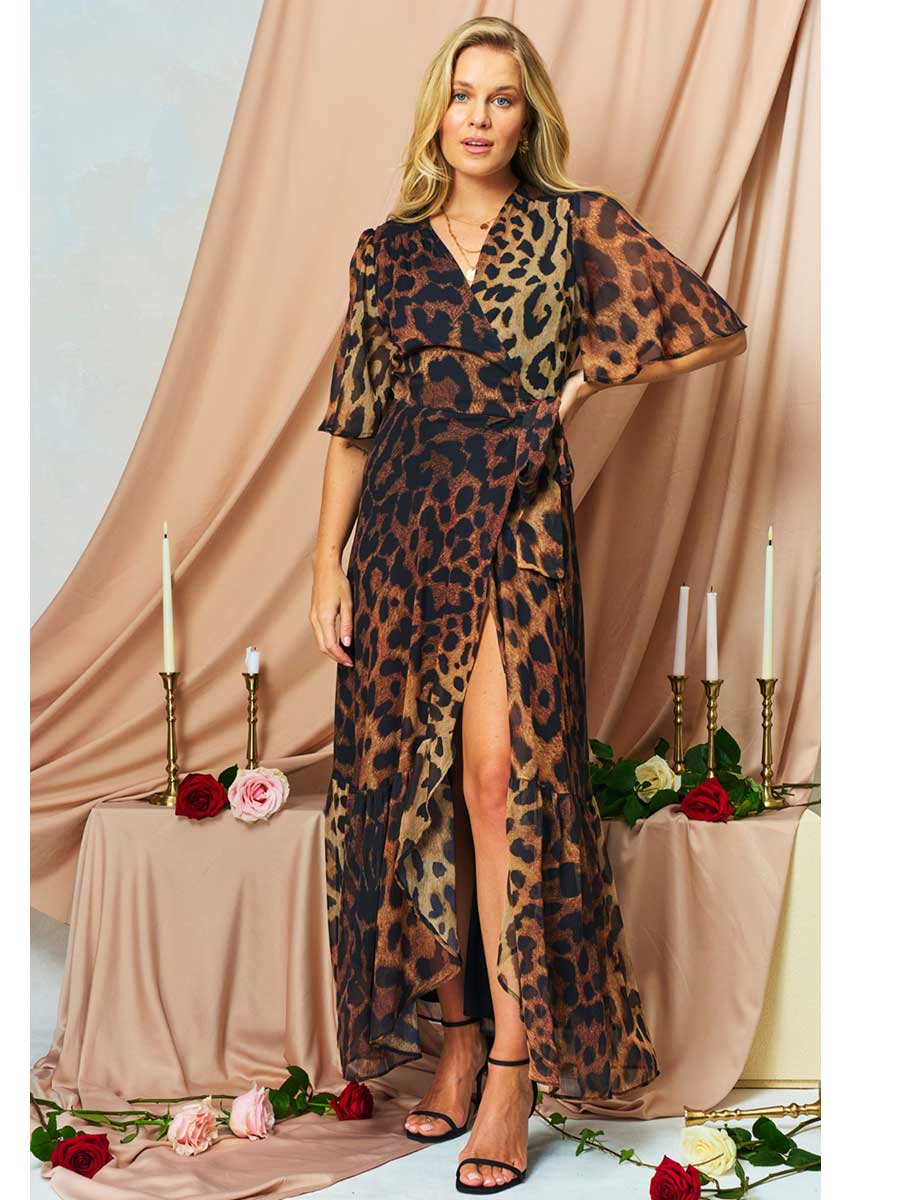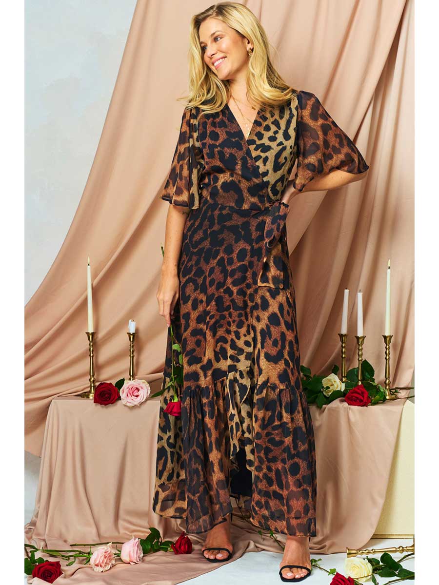 Have heads turning all season long in this classic Hope & Ivy wrap dress – new in for AW25. The Lexi is set to be a seasonal favourite, with an eye-catching leopard print decorating its soft, chiffon base. Thanks to its flowing maxi skirt and figure-enhancing waist tie, she cuts a beautiful silhouette, with feminine, flutter sleeves offering endless style. Whatever the occasion, The Lexi deserves a spot in your forever wardrobe this season.