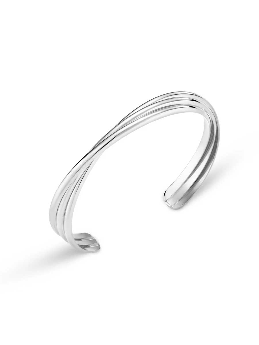 The Interlocking Open Bangle in silver is a timeless statement piece designed for effortless sophistication. Crafted from high-polish sterling silver, this bangle features intertwined linear texture.