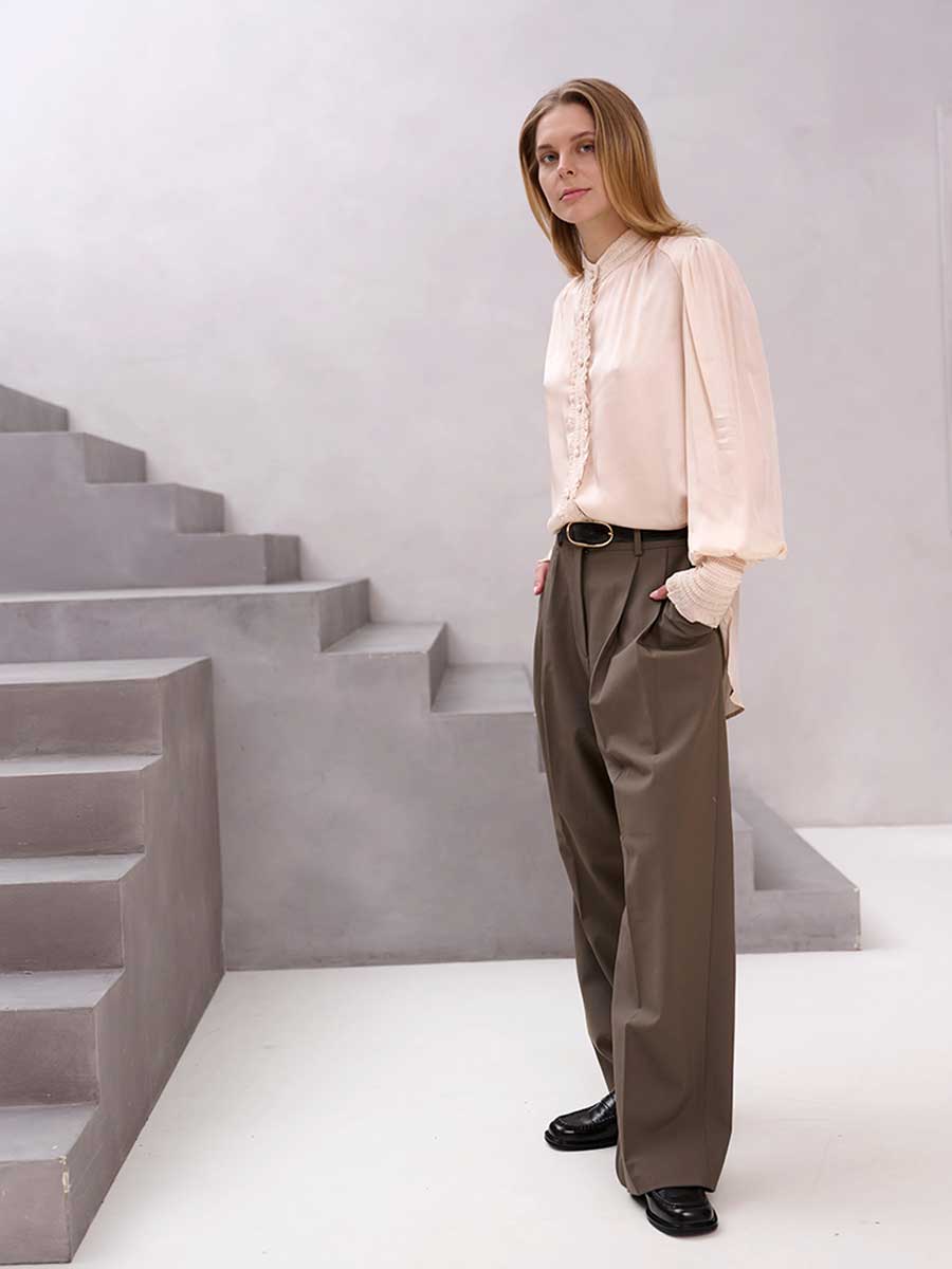 Style it with high-rise trousers and a soft knit jacket for workdays, or half-tuck into wide-leg jeans with sandals for an effortless off-duty look.